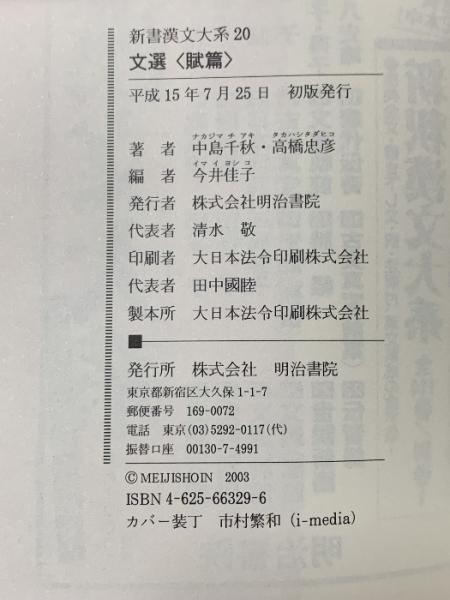 新書漢文大系 20 文選 賦篇 明治書院 中島 千秋
