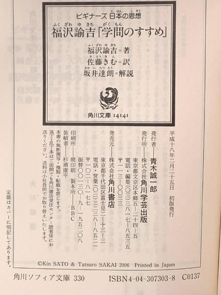 福沢諭吉「学問のすすめ」 ビギナーズ 日本の思想 (角川ソフィア文庫 330 ビギナーズ日本の思想) 角川学芸出版 福沢 諭吉