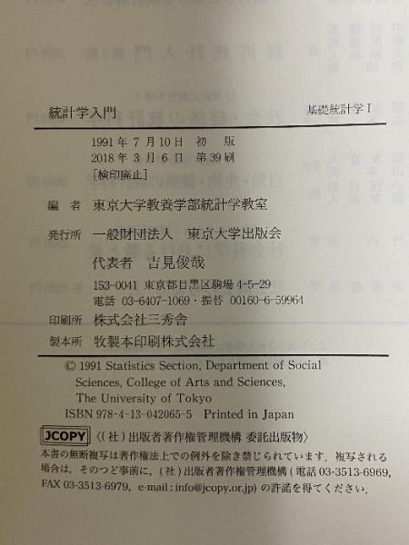 統計学入門 (基礎統計学Ⅰ) 東京大学出版会 東京大学教養学部統計学教室