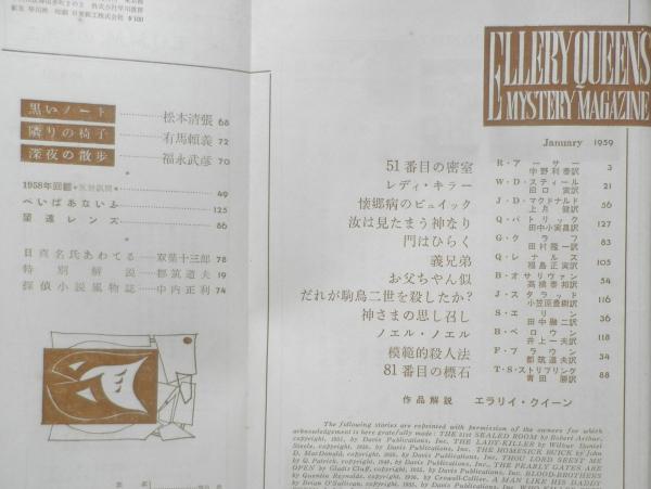 探偵小説月刊誌/エラリイ・クイーンズ・ミステリ・マガジン ロバート・アーサー W・E・スティール フレドリック・ブラウン スタンリイ・エリン ブライアン・オサリヴァン J・D・マクドナルド グラディス・クラフ T・S・ストリブリング ジョゼフ・スタラッドバリイ・ペロウン Q・マトリック 作品解説/エラリイ・クイーン 黒いノート/松本清張