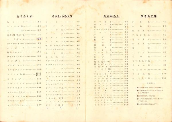 (メニュー)音楽喫茶・民謡居酒屋 どん底