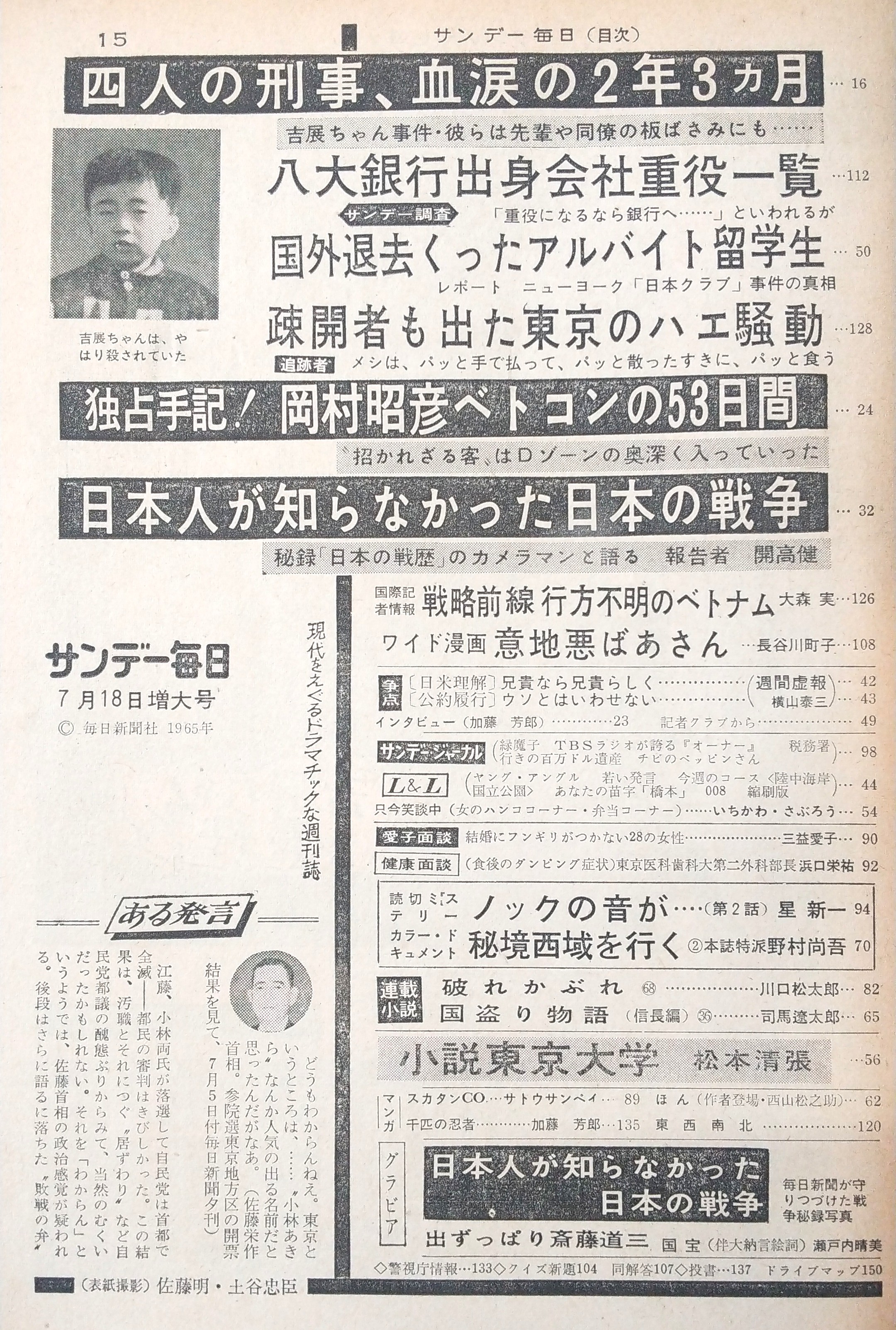 サンデー毎日 昭和40年7月18日・増大号 秘録「日本人が知らなかった日本の戦争」…ほか