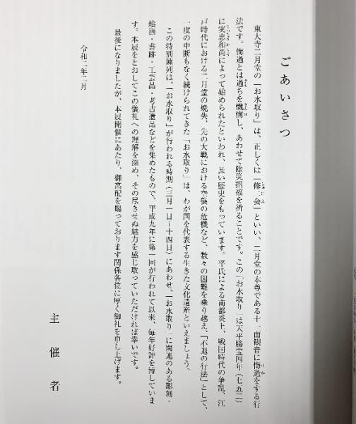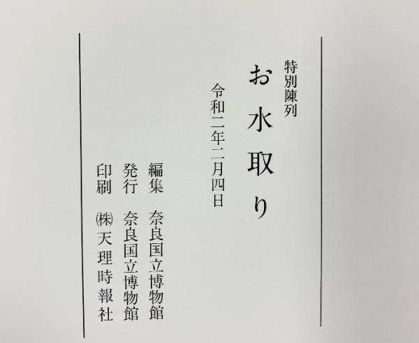 【図録】特別陳列『お水取り』奈良国立博物館 令和2年