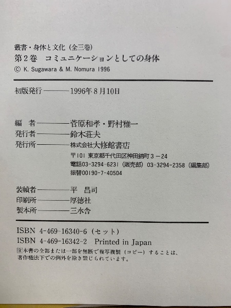 叢書 身体と文化 全3巻揃