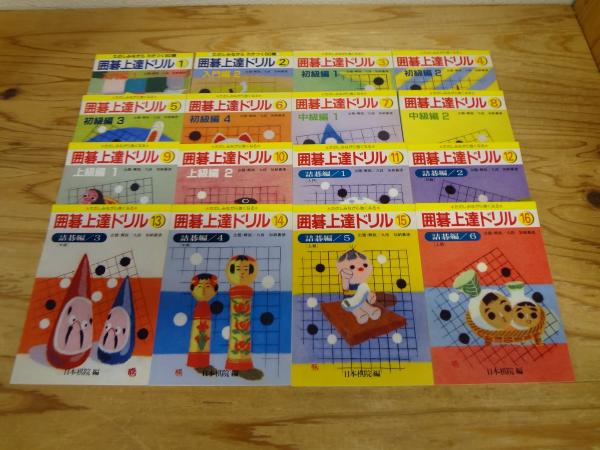 • 解説 日本棋院編の囲碁上達ドリル全16巻セットになります。すべて重版。16巻詰碁編6のみ表紙にヨレ、折れ跡、三方にヤケがみられます。