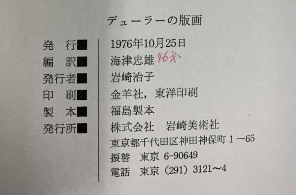 【図録】デューラーの版画 双書 美術の泉27 海津忠雄:編訳 岩崎美術社 1976年