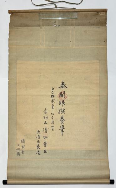 • 解説 大正十二年大西良慶裏書あり 掛け軸上部穴、横イタミあり 発送方法:ゆうパック(国内送料無料)