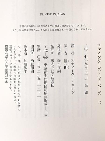 ファインダーズ・キーパーズ 上 文藝春秋 スティーヴン・キング
