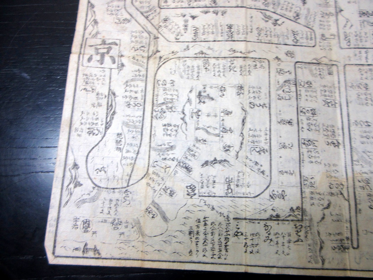 • 解説 江戸期古地図道中記「年玉両面道中記」1点/定飛脚問屋京屋弥兵衛/古書古文書/木版摺りです。