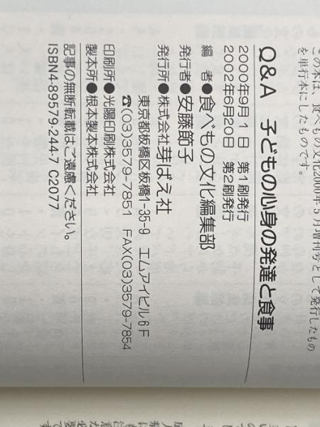 Q&A子どもの心身の発達と食事 芽ばえ社