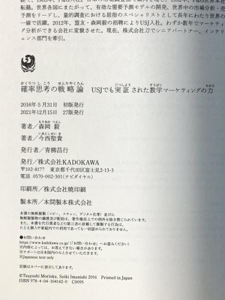確率思考の戦略論 USJでも実証された数学マーケティングの力 KADOKAWA/角川書店 森岡 毅