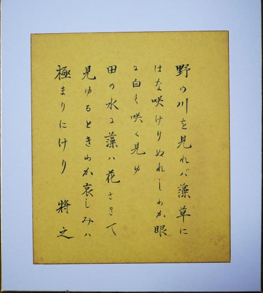 加藤将之色紙(小色紙) 「野の川を見れば藻草に・・・」