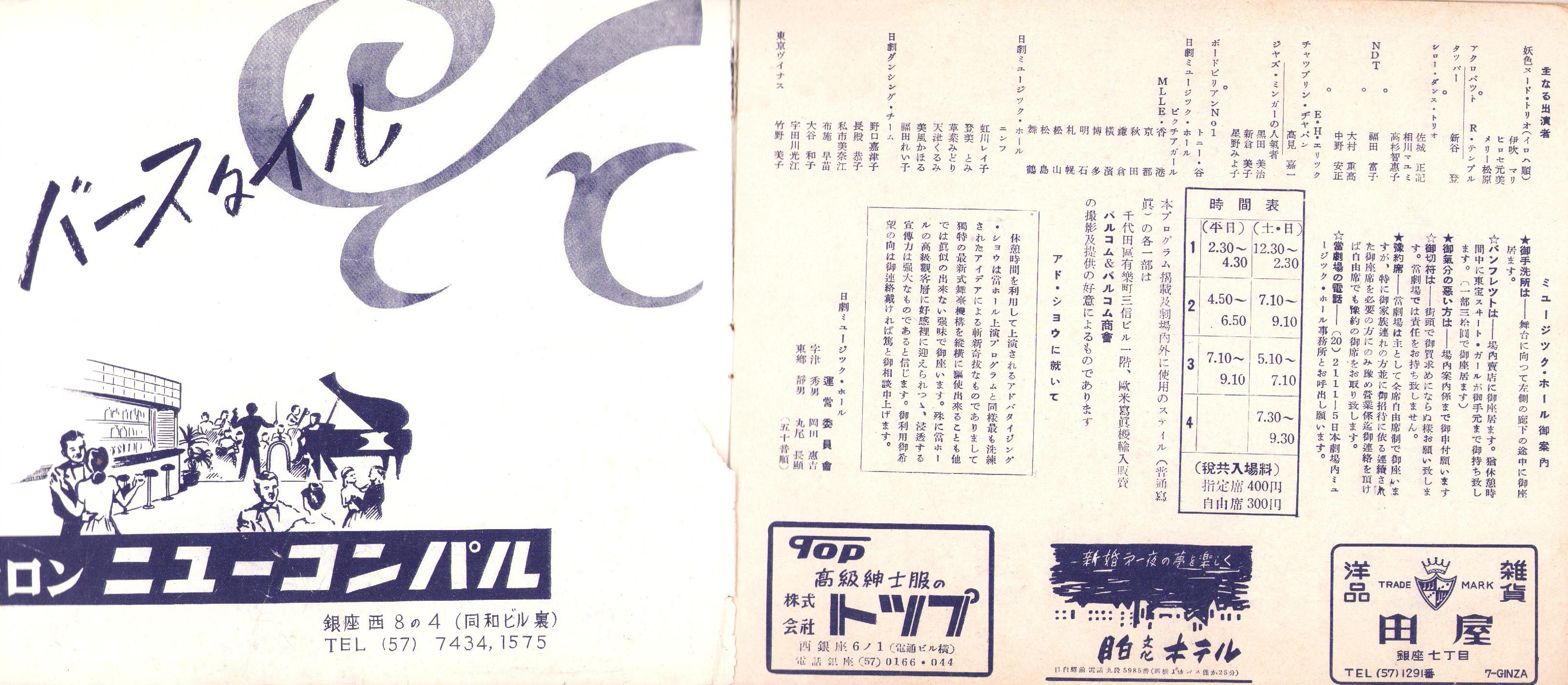 (演劇パンフレット)日劇ミュージックホール -Million Love Follies- 昭和27年9月