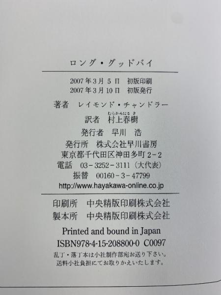 ロング・グッドバイ 早川書房 レイモンド・チャンドラー