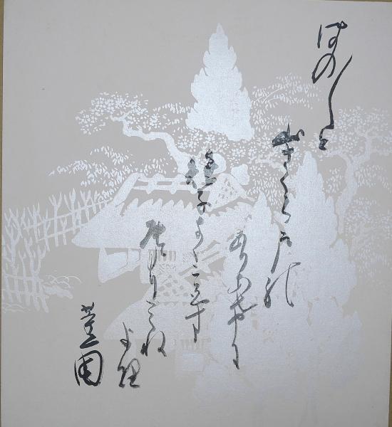 金子薫園色紙 「ほのぼのと山桜戸のありあけに 雉子(きぎす)なく声す尾より峰より」