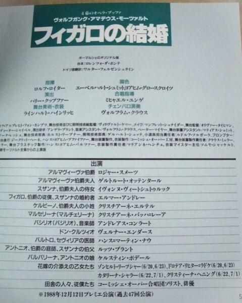 • 著者 ベルリン コーミッシェ・オーパー 1991年日本公演 『青ひげ』『ラ・ボエーム』『フィガロの結婚』 『特別コンサート』 1991年7月1日、名古屋市民会館大ホール『フィガロの結婚』 指揮:ロルフ・ロイター