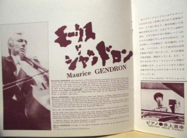 • 著者 MAURICE GENDRON モーリス・ジャンドロン 1975年日本公演 ピアノ:井上直幸 1975年3月12日~3月29日、愛知文化講堂(プログラム A) ほか