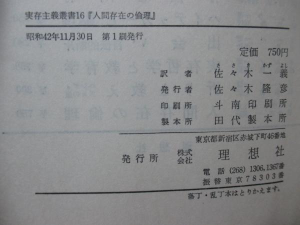 人間存在の倫理 <実存主義叢書 ; 第16> (初版)
