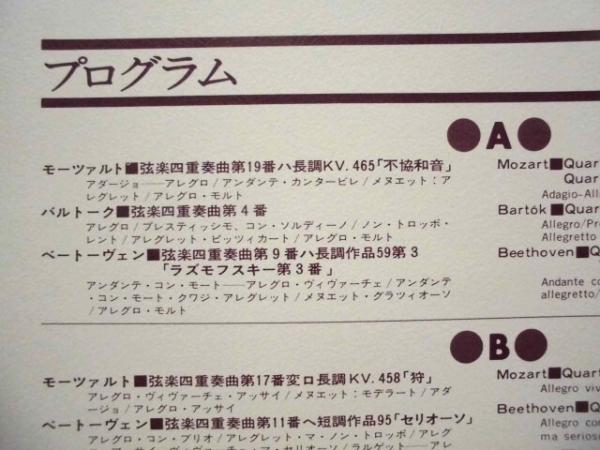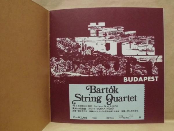 • 著者 バルトーク弦楽四重奏団 1975年日本公演 ペーター・コロムーシュ シャーンドル・デヴィッチ ゲーザ・ネーメット カーロイ・ボートヴァイ 1975年5月20日~6月5日、愛知文化講堂(プログラム A) ほか