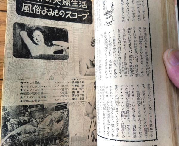 【夫婦生活(昭和34年1月号)】「夫の情事・妻の情事・愛欲情炎実話大特集」・「世界の夫婦生活・よみものスコープ」等