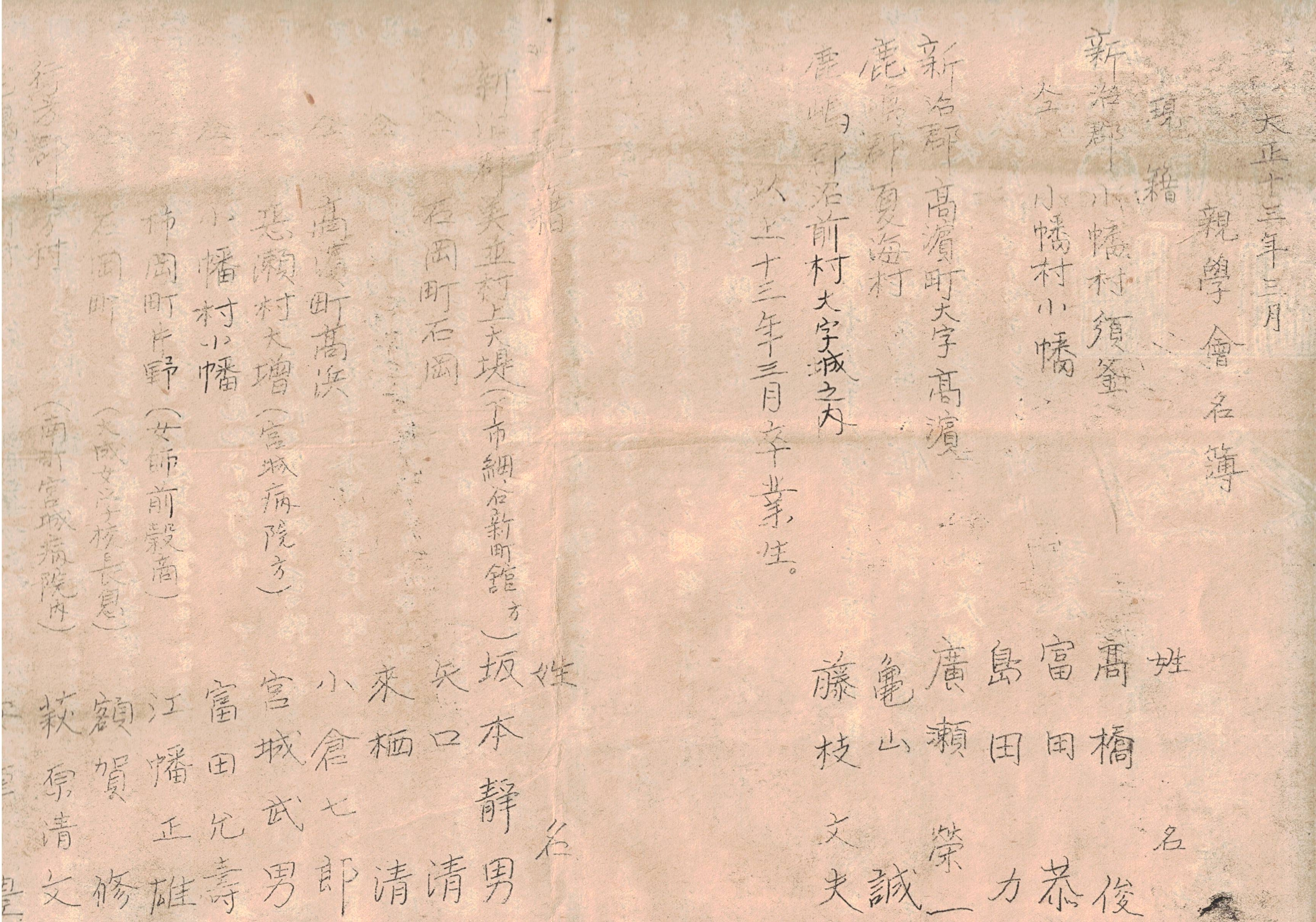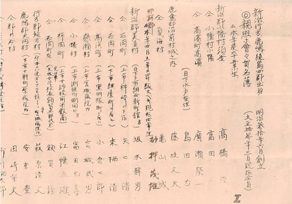 ※新治、行方、鹿嶋、猿島四郡出身親學會々員名簿 明治30年6月創立・大正13年3月現在 ガリ刷 水戸中学校