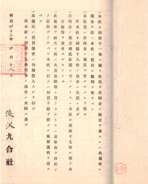 ※善種金通帳 明治43年千葉県山武郡源村滝沢九合社 明治43年~大正8年