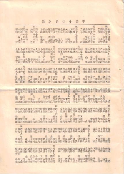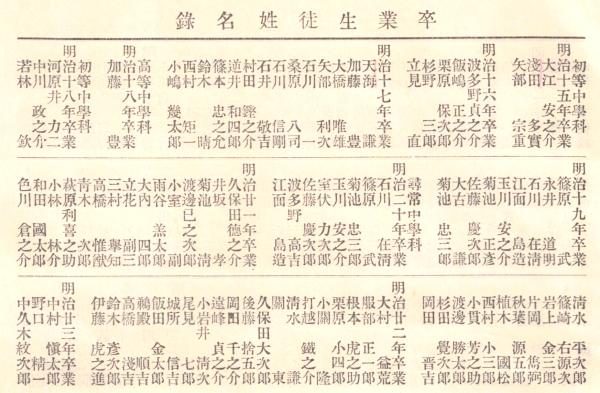 卒業生徒姓名録 明治15年卒業大江安之介浅田多實等~大正3年生まの一部迄 茨城中学校・・・水戸第一高等学校