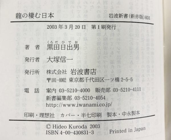 龍の棲む日本 (岩波新書 新赤版 831) 岩波書店 黒田 日出男