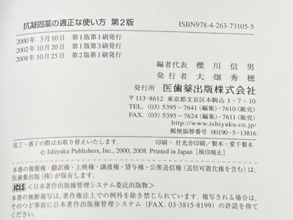 抗凝固薬の適正な使い方第2版 医歯薬出版