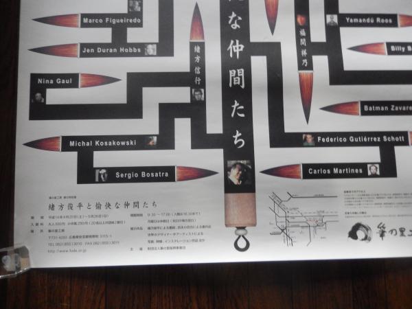 緒方俊平と愉快な仲間たち展 B全サイズ ポスター(728mm × 1030mm)緒方俊平と愉快な仲間たちイタリア·ミラノでの招待個展をはじめ、弁護士活動の傍ら「墨絵の詩人」として書画作品制作や童話出版に取り組む緒方俊平氏。今回のコラボレーションには彼の幅広い交友関係を反映し、国内外を問わず多くのアーティストが緒方氏の「愉快な仲間たち」として参加。アートディレクターの玉野哲也さんがアレンジしたアートのベルトラインは「夢と、夢の中の夢との繰り返し」をテーマに皆様を堪能させます。体も心もぽかりと浮かんでしまうようなアート空間。展示では緒方氏の呼びかけで、女優の吉永小百合さんによる原爆についての詩「書」にした作品と、アニメーション美術監督·背景画家として著名な男鹿和雄さんによる原爆と平和を主題とした絵画作品による、コラボレーション作品が出品。緒方氏がその活動において大切にしていることは、世界の若きアーティストたちとの交友です。今回の展示のために、日本国内はもちろん、ブラジル、メキシコ、オーストラリア、スペイン、アルゼンチン、トルコ、イタリア、アメリカ、イギリスなどから絵画、写真、映像など多数のアート作品が寄せられた。