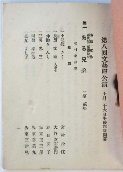 菊池寛作「ある兄弟」邦枝完二舞台監督