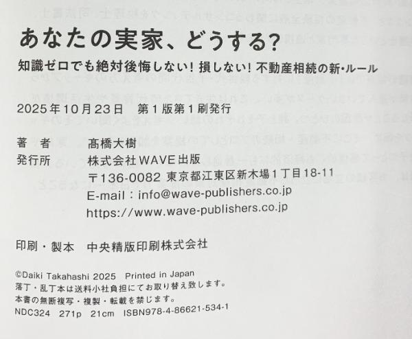 あなたの実家、どうする? 知識ゼロでも絶対後悔しない! 損しない! 不動産相続の新・ルール WAVE出版 髙橋 大樹