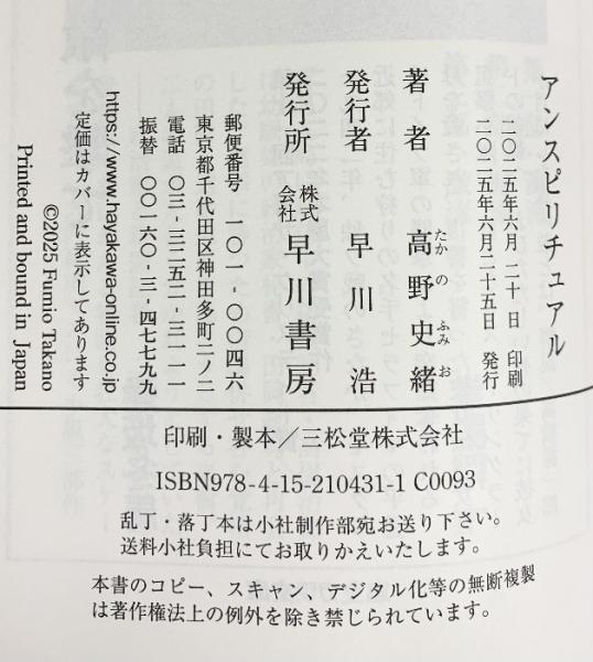 アンスピリチュアル 早川書房 高野 史緒
