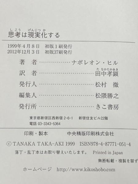 ※イタミ有 思考は現実化する きこ書房 ナポレオン ヒル