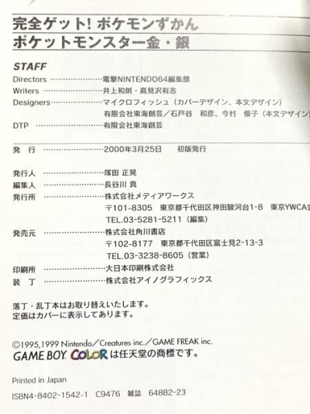 電撃攻略王 完全ゲット!ポケモンずかん ポケットモンスター 金・銀 (電撃ムックシリーズ 電撃攻略王) メディアワークス 電撃NINTENDO64特別編集
