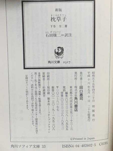 新版 枕草子 下巻 現代語訳付き KADOKAWA 石田 穣二