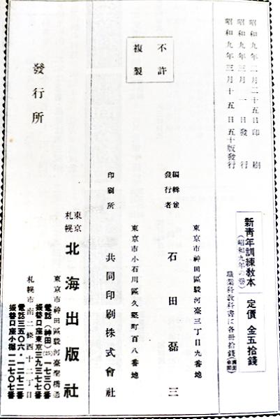 新青年訓練教本(2冊) 各A5判 北海道聯合青年団編 北海出版社 昭和8,9年