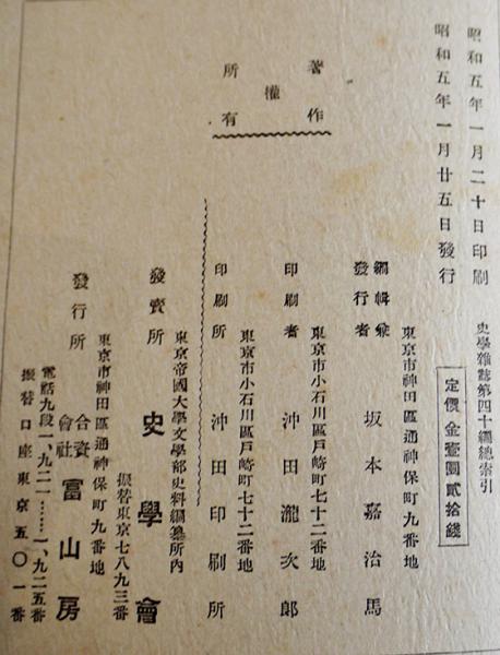 「史学雑誌」第40号附録 史学雑誌総索引 自第1編至第40編 A5判197p 史学会 昭和5年