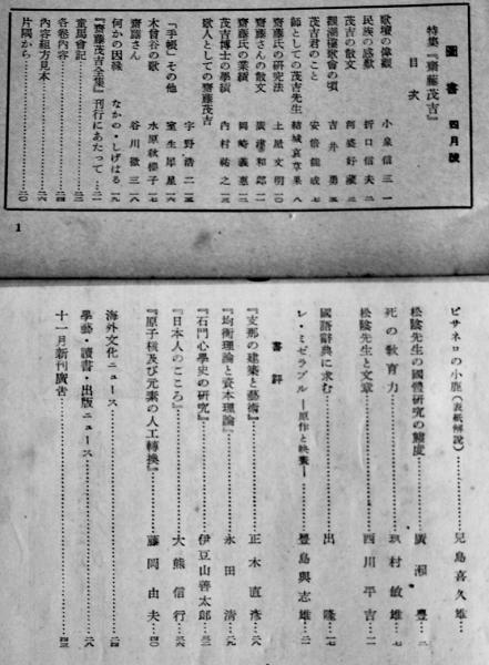 「図書」吉田松陰號/斎藤茂吉號/終刊号/他(6冊) A5判 岩波書店 昭和13〜27年