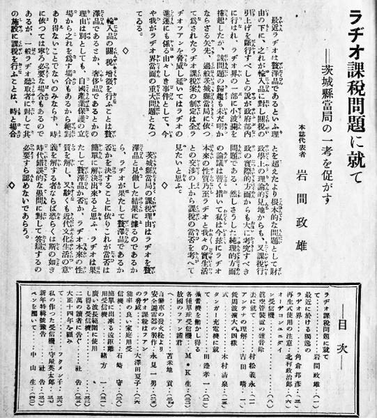• 解説 ラジオ課税問題に就いて/真空管装置の雑音除去に就いて/能率の良い家庭用受信機/他