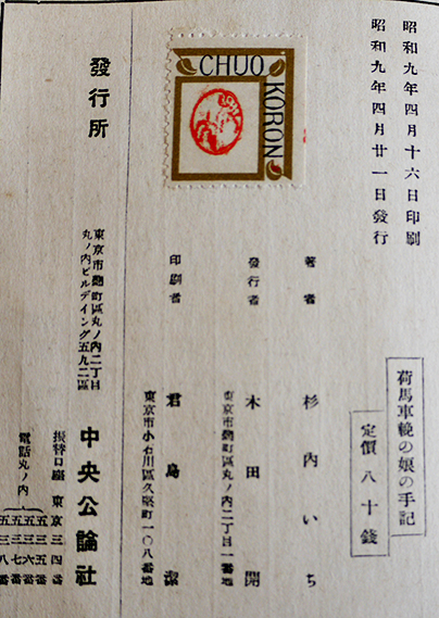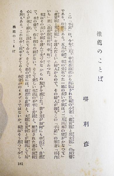 荷馬車輓の娘の手記 杉内いち著/堺利彦「推薦のことば」B6判初版箱 少経年劣化有り 中央公論社 昭和9年