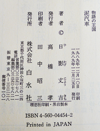 泥汽車 日影丈吉著 B6判初版カバ帯美本 白水社 1989年