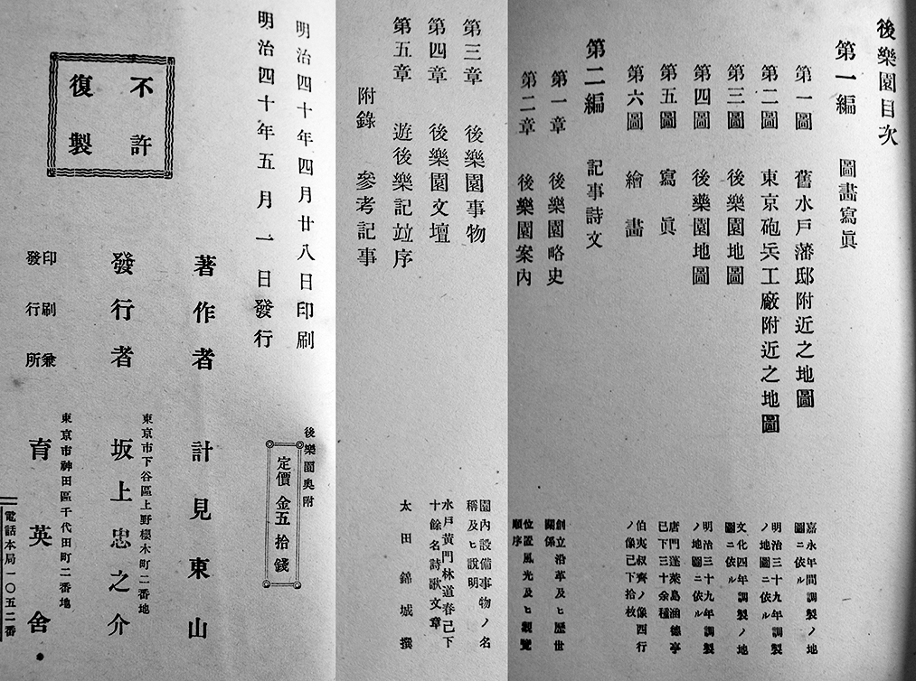 後楽園 全(東京小石川) 計見東山著併画 A5判本文66p+図版写真地図20点以上 東京育英社 明治40年