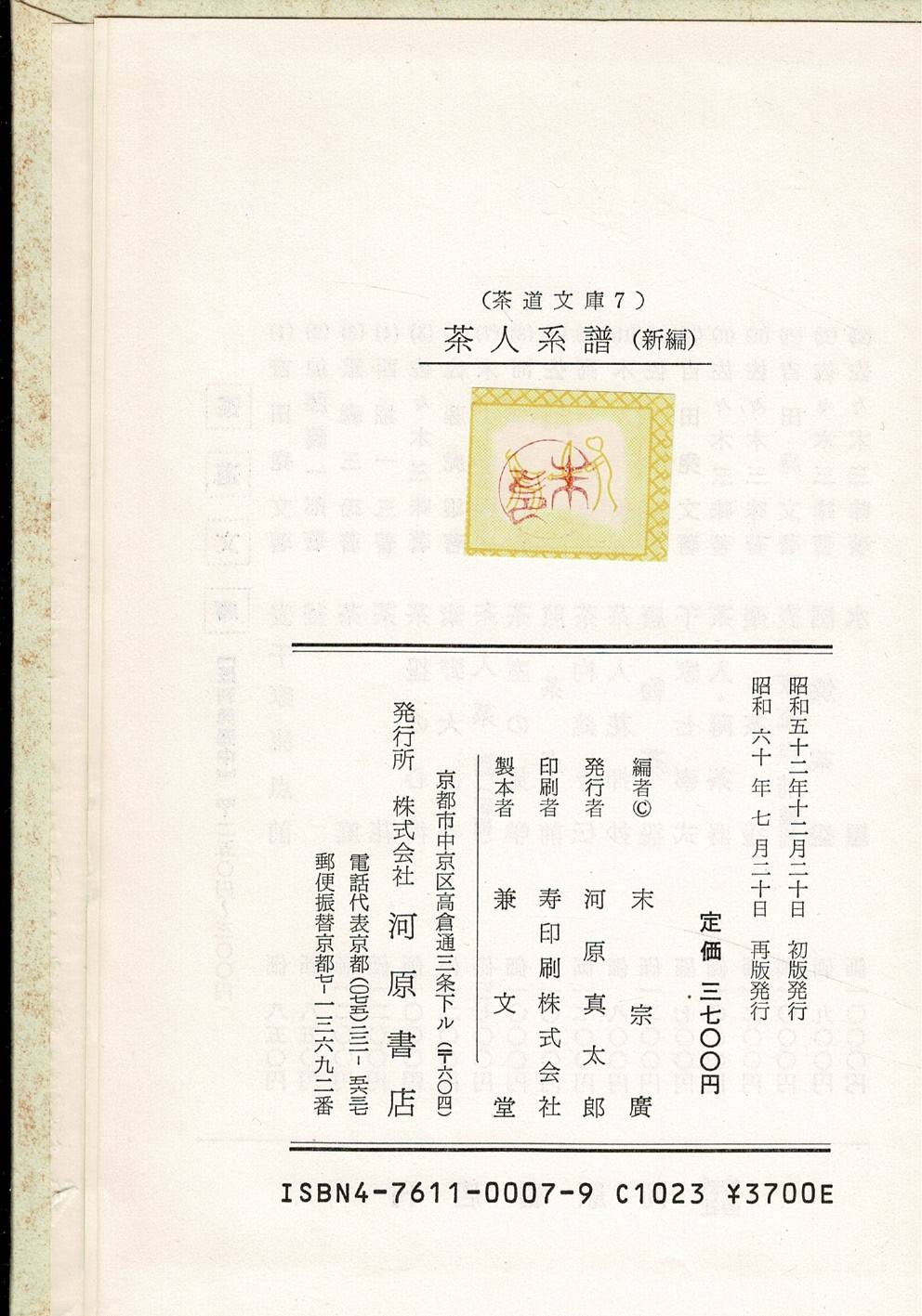 茶人系譜(新編) <茶道文庫 7> 再版