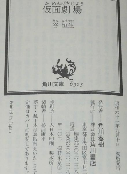 • 解説 谷恒生 仮面劇場 角川文庫 昭和61年9月初版