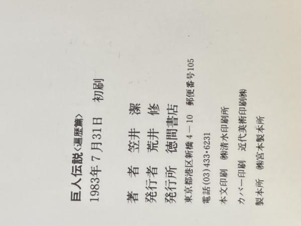 ※イタミ有 巨人伝説 遍歴篇 (TOKUMA NOVELS) 徳間書店 笠井 潔