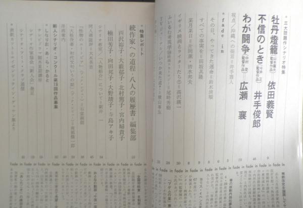 三大話題作シナリオ特集 その日、やってきた運命/鈴木清順 牡丹燈籠/依田義賢 不信のとき/井手俊郎 わが闘争/広瀬襄 特集レポート/続作家への道程・八人の履歴書・編集部 西沢裕子・大藪郁子・北村篤子・宮内婦貴子・楠田芳子・向田邦子・大野靖子・寺島アキ子 他