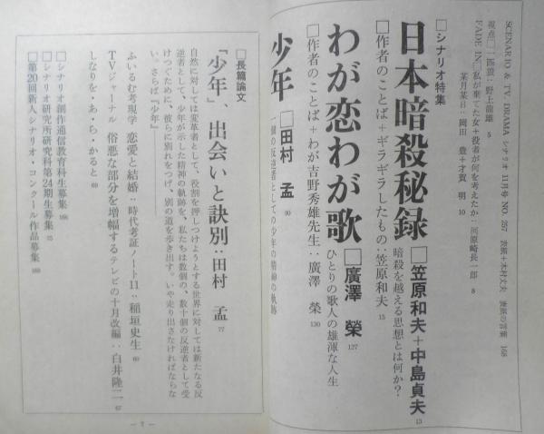 シナリオ特集 日本暗殺秘録/笠原和夫+中島貞夫 わが恋わが歌/廣澤榮 少年/田村孟 長編論文・「少年」、出会いと訣別/田村孟 ふいるむ考現学・恋愛と結婚・時代考証ノート11/稲垣史生 TVジャーナル・俗悪な部分を増幅するテレビの十月改編/白井隆二 他