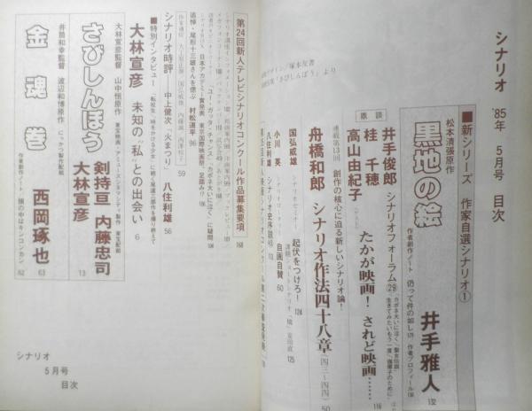 黒地の絵/井出雅人 鼎談・井手俊郎・桂千穂・高山由紀子/たかが映画!されど映画… 舟橋和郎/シナリオ作法四十八章 シナリオ時評・中上健次「火まつり」/矢住利雄 特別インタビュー・大林宣彦/未知の“私”との出会い さびしんぼう/剣持亘・内藤忠司・大林宣彦 金魂巻/西岡琢也 他