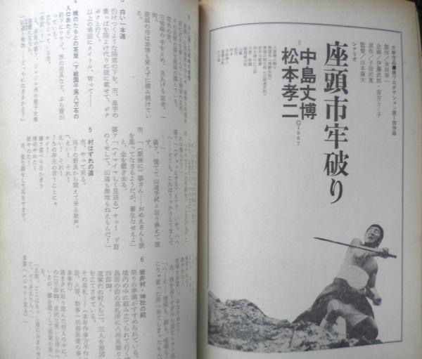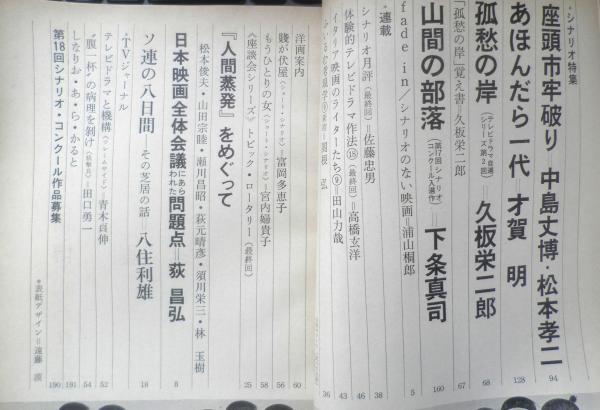 シナリオ特集 座頭市牢破り/中島丈博・松本孝二 あほんだら一代/才賀明 孤愁の岸/久坂栄二郎 山間の部落/下条真司 座談会シリーズ/トピック・ロータリー(最終回)「人間蒸発」をめぐって 日本映画全体会議にあらわれた問題点/荻昌弘 ソ連の八日間・その芝居の話/矢住利雄 他